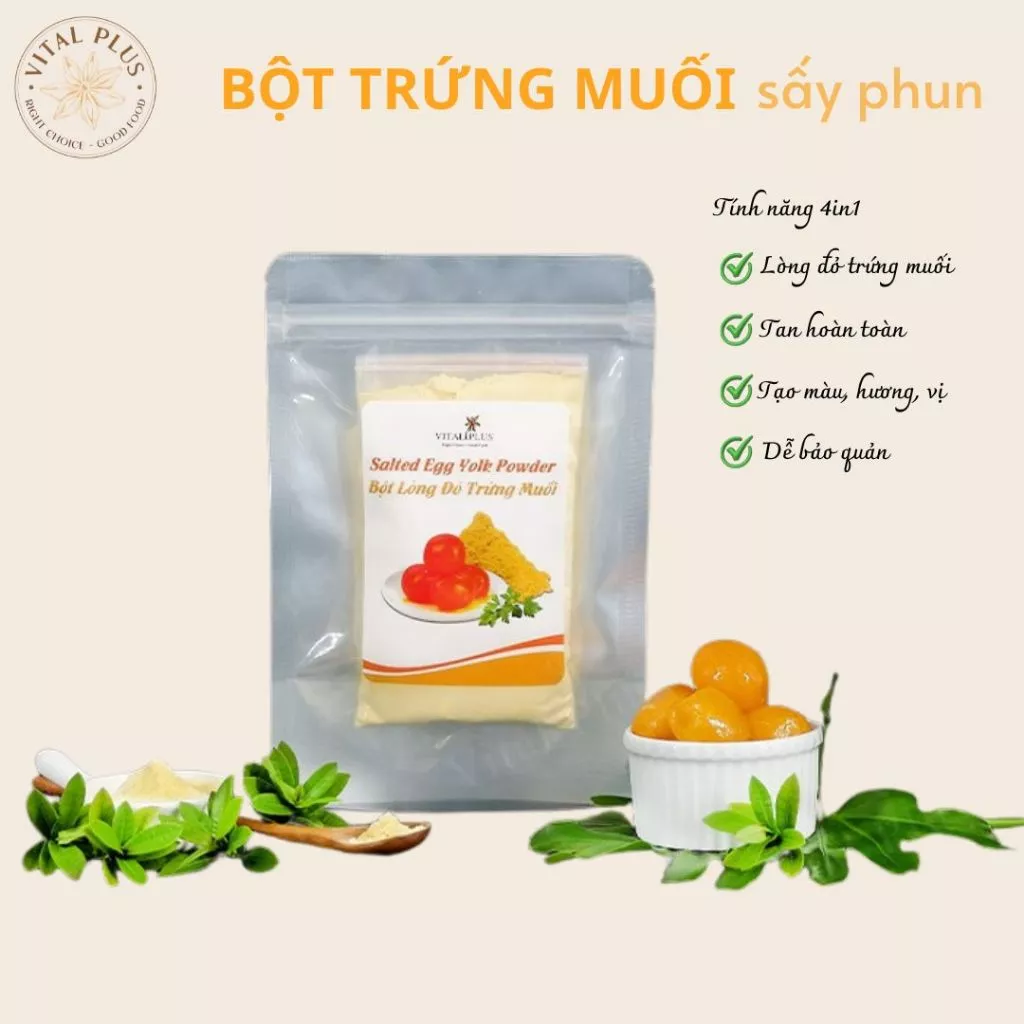 Trứng muối từ lâu đã có mặt trên bản đồ ẩm thực của nhiều nền văn hóa. Với hương thơm và vị béo béo mằn mặt đặc trưng của lòng đỏ trứng gà được cô đọng lại sau quá trình ủ muối, trứng muối có thể dễ dàng làm xiêu lòng bất kỳ ai.Trứng muối thật sau khi được xử lý vi sinh và sản xuất theo công nghệ sấy phun, phối trộn thêm màu và hương thực phẩm theo tỉ lệ hợp lý tạo nên sản phẩm Bột Trứng Muối hoàn thiện ở dạng bột mịn.Với Bột Trứng Muối trong bếp, các món như tart trứng, bánh quy, bánh bông lan, nhân bánh Trung Thu, bánh bao, kem,… đều có thể dễ dàng mang hương vị đậm đà hấp dẫn.
