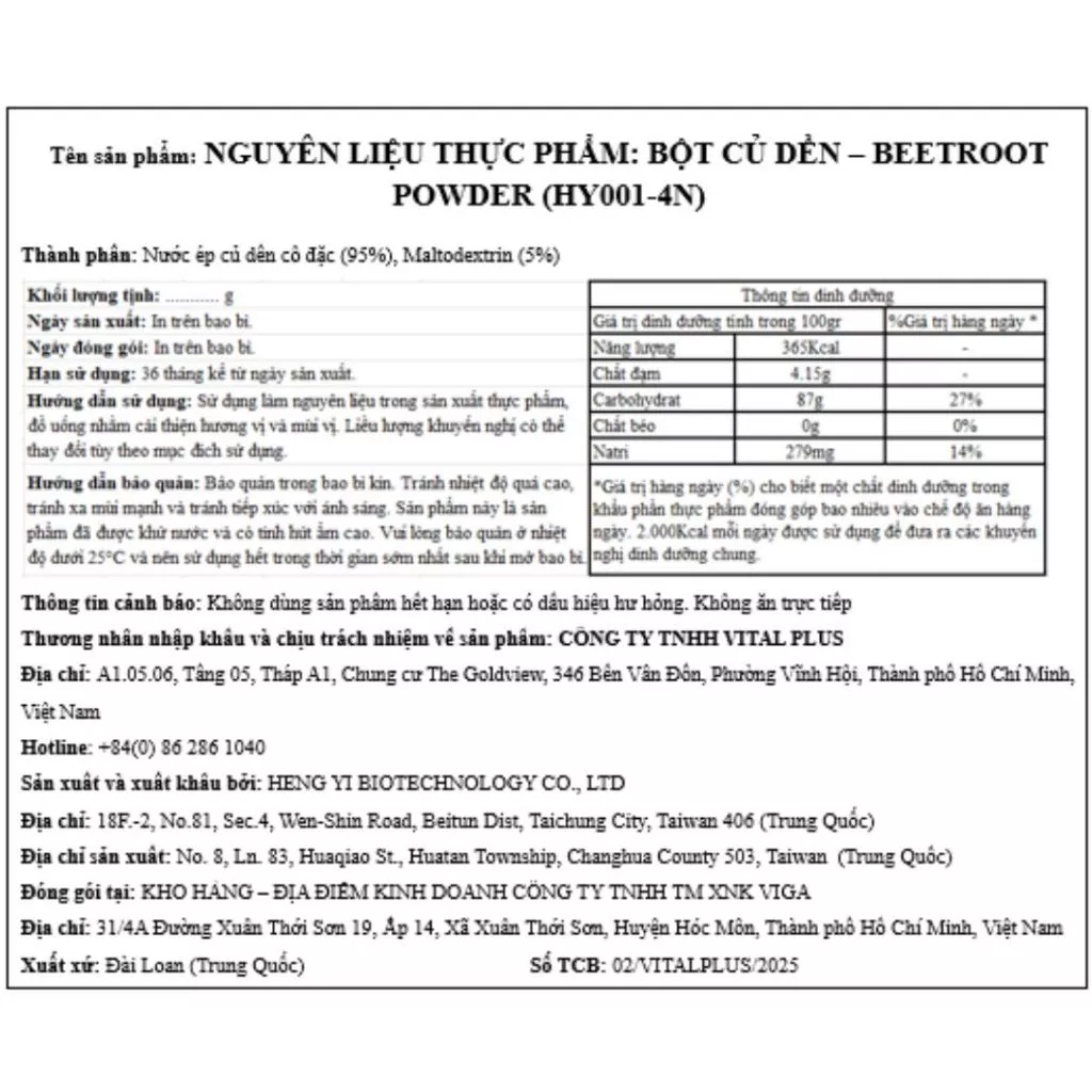 Thành phần: Nước ép củ dền, Maltodextrin