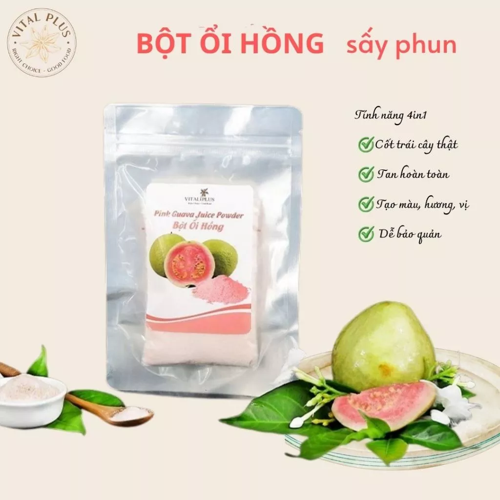 Bột Ổi Hồng với thành phần từ cốt quả ổi hồng tươi được chế biến bằng kỹ thuật sấy phun độc đáo, kết hợp cùng hương và màu thực phẩm khiến các món tráng miệng của thơm dịu hương ổi và vị ngọt nhẹ dễ chịu.