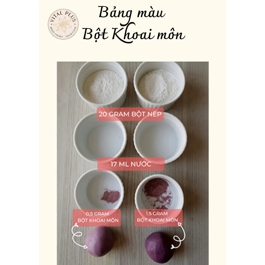 – Vị thơm của củ khoai môn- Tạo màu tím đậm, nhưng vì vậy mà chỉ nên cho bột theo tỉ lệ ít từ 1-2 gram sau đó từ từ tăng lên cho đến khi đạt màu và vị vừa ý.