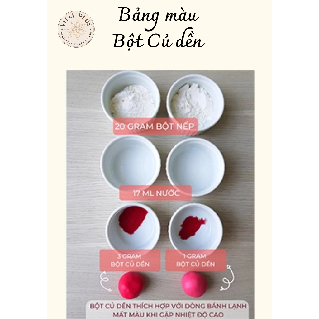 Không chỉ vậy, chúng ta cũng có thể thoải mái dùng Bột Củ Dền để tạo màu cho mì, bánh gateau, bánh trôi, bánh bao, v.v…