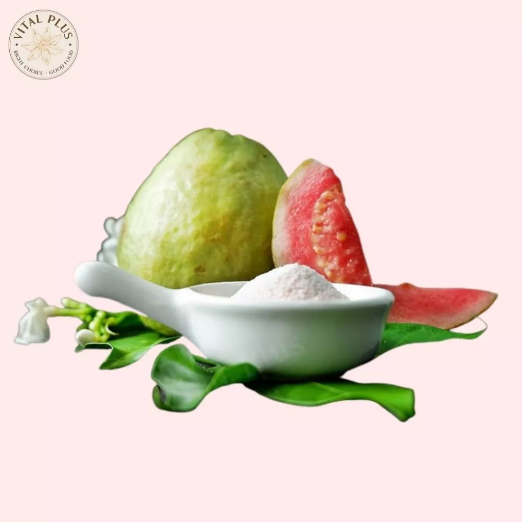 Bột Ổi Hồng với thành phần từ cốt quả ổi hồng tươi được chế biến bằng kỹ thuật sấy phun độc đáo, kết hợp cùng hương và màu thực phẩm khiến các món tráng miệng của thơm dịu hương ổi và vị ngọt nhẹ dễ chịu.